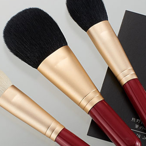 日本の筆生産量8割を占める広島県熊野町。江戸時代から受け継がれた筆作りの技法が化粧筆作りにも活かされ、その品質の高さで「熊野」は今や世界に誇るブランドとなっています。毛先をカットしない独自の技法で作られた熊野の化粧筆は、穂先がやわらかくやさしいので肌触りが違います。メイクのノリや持ちも断然違う「本物」の逸品です。